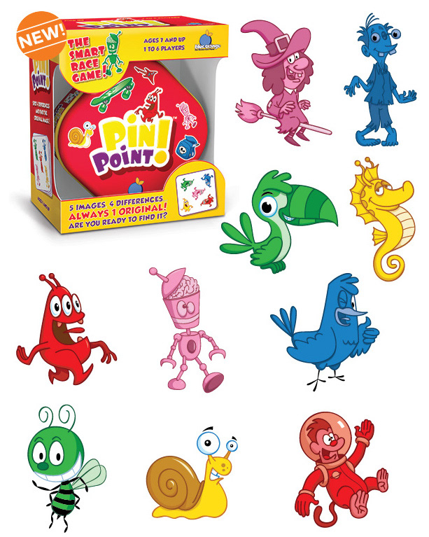 Illustrations de Marc Chouinard pour le jeu de société Pin Point ! de Blue Orange Games.